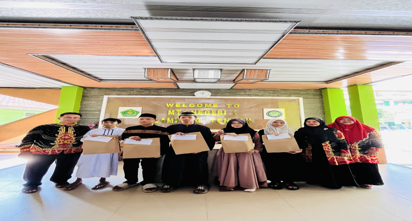 Terbanggi Besar, MTsN 1 Lampung Tengah (Humas) - Dalam semangat kepedulian dan kebersamaan di bulan suci Ramadan, MTsN 1 Lampung Tengah menggelar kegiatan pembagian zakat fitrah kepada