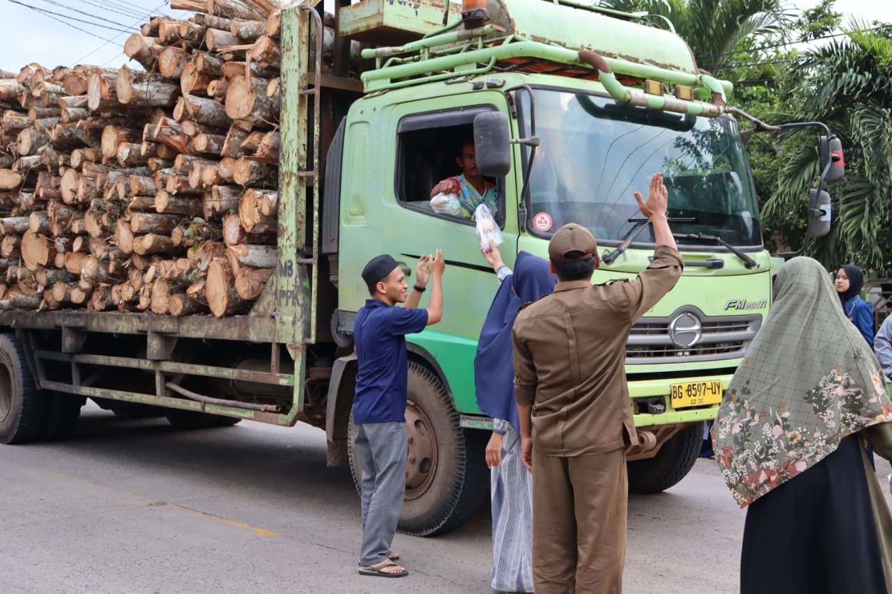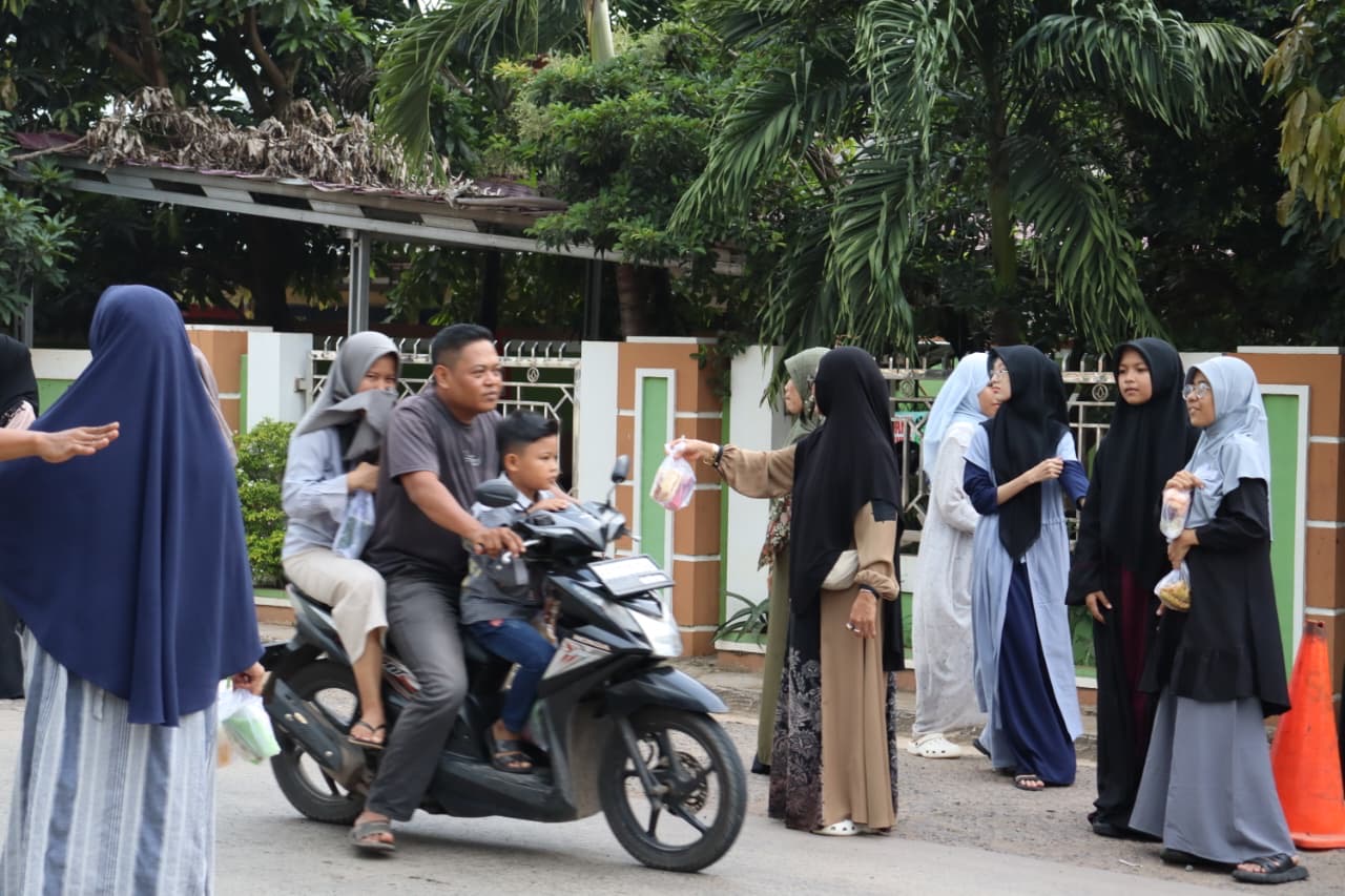 Dengan senyum ramah dan penuh semangat, mereka membagikan takjil kepada pengendara, pejalan kaki, serta warga sekitar yang sedang menjalankan ibadah puasa.